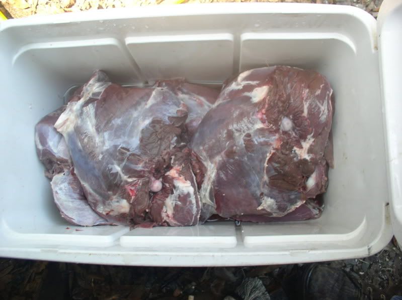 Well you missed a strange hunt but perfect weather. Temps low 70's to low 40's, 15mph winds, moonlit nights with no clouds or rain, bugs were tolerable. The total number of hunters was the second lowest since keeping records, 20. But the success rate was 100%. The strange part was the harvest ratio. Out of the 20 taken, this is how it broke down. A 200lb boar hog with 2" cutters (first hog taken in over 30 years) A 3 point 2 does And a combination of 16 others that were spikes or button bucks. The largest deer was 93lbs. The biologist was dumbfounded and had no answers for the almost identical harvest for each hunter, normally it's a good mix from yearlings to deer weighing near 135lbs (the record is 141lbs). I ended up with two spikes weighing 88 and 78lbs, missing a doe and seeing 5 others but had no good shot. Didn't have any pictures worth while, this is all I got. The camp and meat in the cooler. http://i175.photobucket.com/albums/w...saw1109002.jpg http://i175.photobucket.com/albums/w...saw1109003.jpg Getting to take a REAL shower after 4 days will be a treat! Those bucket baths get old quick! Think about the hunt in December, the 10th - 12th. Even though it's a gun hunt, you can still hunt with the bow. Hope everybody turns out well at your house! |