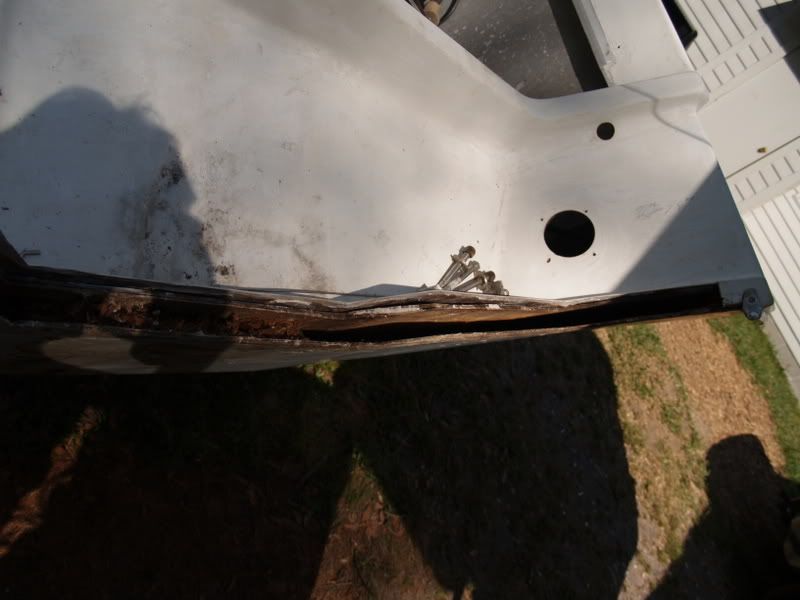Oh, Jesus fricken Christ. If I were a cat I'd already be dead. Again got nosey and pulled the motor off to remove the aluminum transom cap, figured I could reseal it. More plundering I ended up removing the wood in the transom, the center was fine but the sides were nonexistant. Like daddy said you've gone this far can't stop now.