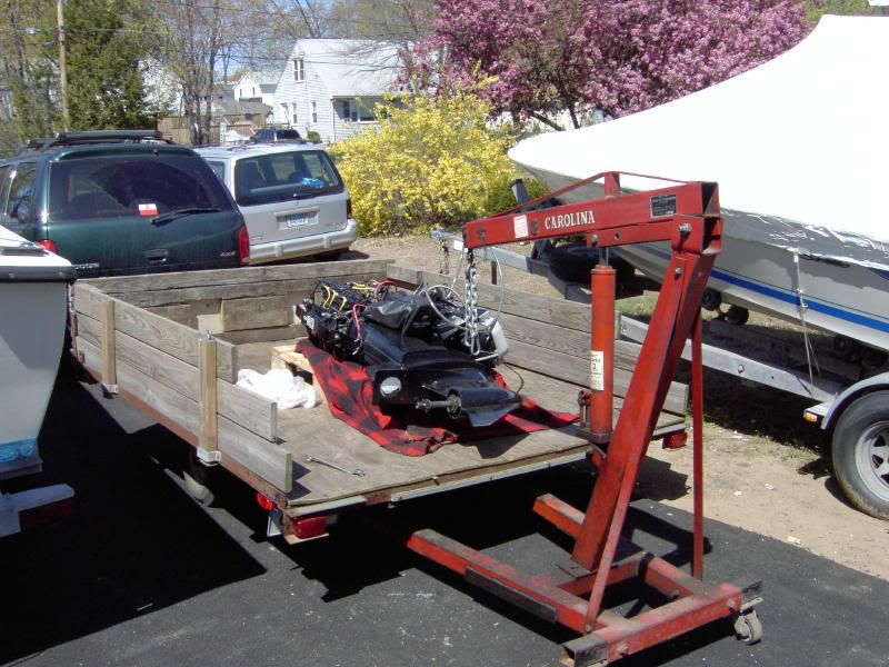 Did alot of work this week did a good part of the re-wiring job and the hardest part was putting the boat on the trailer and realining all the rollers the boat was sitting cocked and now it sits level within less than a quater of a inch. Tommorrow is the day the Merc 150 is going to be installed, I was lucky I have a friend that owns a garage and lent me a nice engine hoist and the place I buy parts from loaned the Merc lifting eye,I'll post pictures tommorrow....Ted