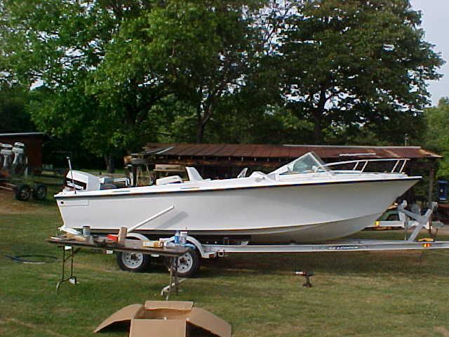 ok i got home and sanded then repaired the glass and finished painting the lower cowlings and mounted the parts and hoodon the boat what ya think.