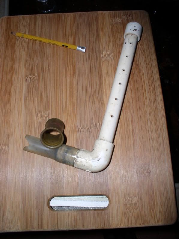 Utilizing the existing fishbox drain tube, get a piece of flexible hose that will fit snugly inside it, add a piece of pipe with a cap and holes drilled (starting at the level you want to maintain the water height). http://i175.photobucket.com/albums/w...aitwell002.jpg http://i175.photobucket.com/albums/w...aitwell001.jpg This works well with boxes that drain to the side or rear. If draining to the rear, just add a 90 in order to reduce any engine exhaust problems. http://i175.photobucket.com/albums/w...aitwell003.jpg For real troublesome bait like pogies or shrimp the addition of an aerator or bubbler greatly extents their survivability. |