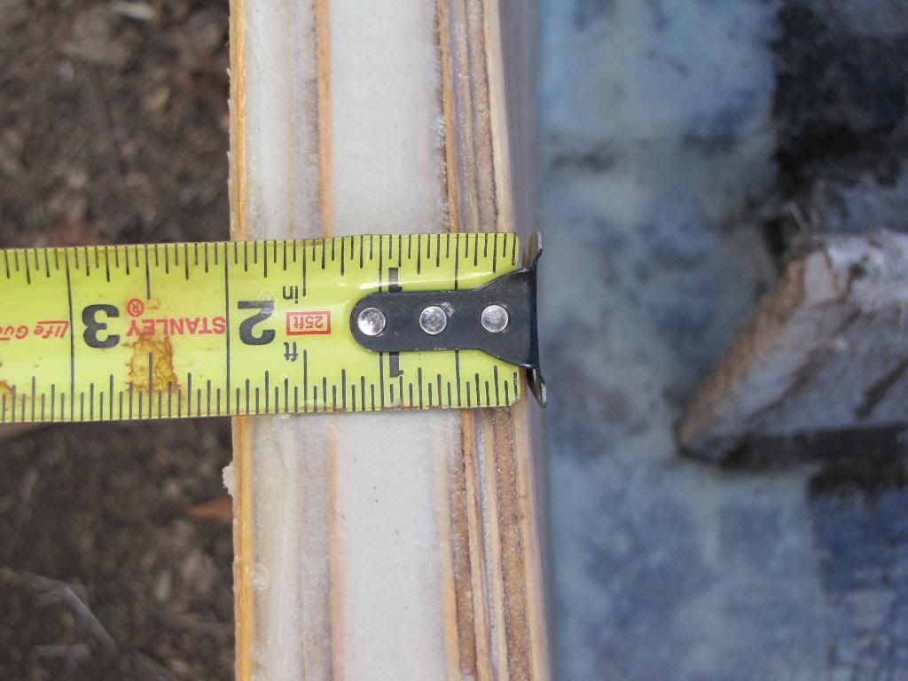 I thought I laminated 2 sheets 3/4" plywood together and it was a good match for what was there originally. I added some knee braces and made my 20 into a full transom boat with bracket. It is holding up good even with a 250 stressing it out. |