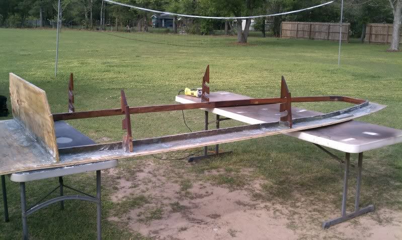 http://img.photobucket.com/albums/v7...t/IMAG0162.jpg Today Im going to try and get the front wall patterned out and cut to attach to the deck. I went ahead and clamped it down to get the small "bow" out of it and glassed the underside. http://img.photobucket.com/albums/v7...t/IMAG0163.jpg http://img.photobucket.com/albums/v7...t/IMAG0164.jpg |