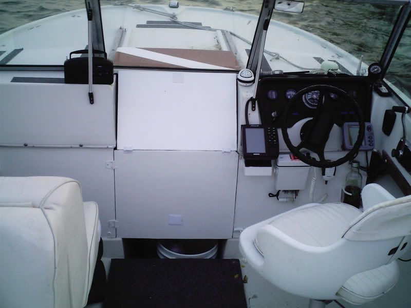 Thats a good idea. I like that white vinyl look. I like your dash too. I wanted the door just in case one of the kids wanted to nap while I was fishing. Heres my crappy dash. Getting ready for winter.