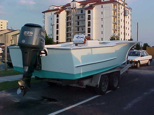 AIGHT sounds good. I believe the new V-20 should be wider though like 9' 6" beam and 8' 6" at transom. hey here's you a nice boat. A guy i know at the beach built this in his back yard took him about 2 yrs since he has a steady job. Then he decided to sell it.