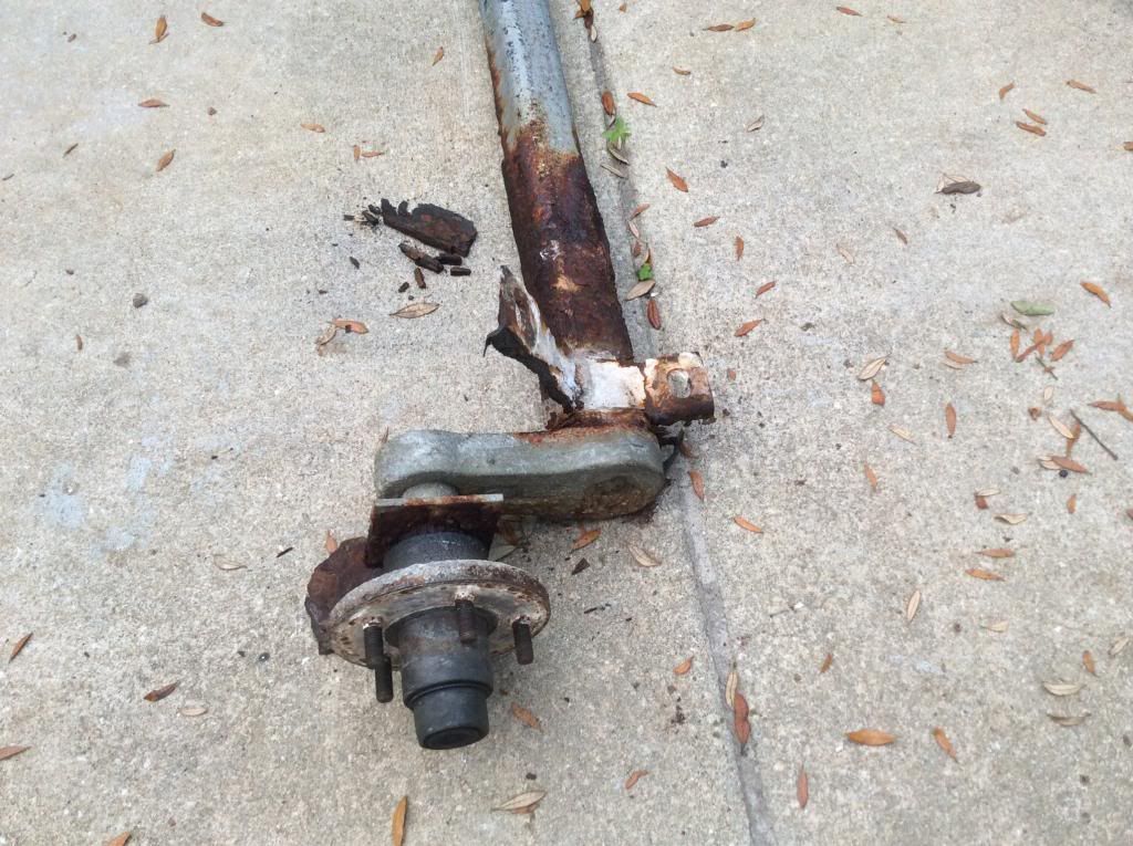 Put new axles on mine a couple years ago, they were about 11 years old. The weld holding the spindle in the axle rotted away and my wheel and tire just fell out. Thankfully not while riding down the road. My trailer guy built new ones for $150 each. |