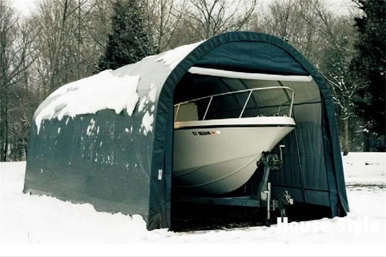 shelters/temp. garages I am strongly considering one of those heavy canvas type, round top, car/boat storage garages. I feel, for my needs, something like that would be perfect....no more covering and uncovering after each time out, no sun beating down on it, no rain/leaves and of course a great place to have it in during its winter hibernation. Any of you fellas have/had/want something like that? I just started looking around the internet, so additional info/feedback would be helpful and appreciated. Thanks!   |