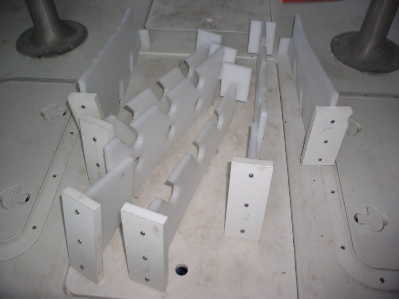 http://i175.photobucket.com/albums/w...ki3/001-11.jpg http://i175.photobucket.com/albums/w...ki3/002-11.jpg http://i175.photobucket.com/albums/w...aki3/003-5.jpg http://i175.photobucket.com/albums/w...aki3/004-5.jpg Each side is capable of holding 6 rods ranging from Penn 4/0 to Zebco 33 or a combination of various crap up to 7' long. Hopefully I'll get it completed in the next week or so with a sea trial. |