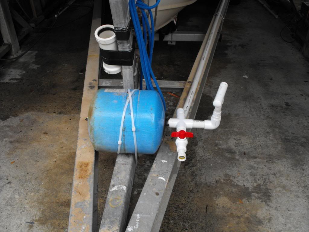 Damn.. I threw away a waterlogged expansion tank just like that about 2 months ago... got a brandy new one on my boiler now... <sigh> Great idea though. Nicely thought out. I usually launch in semi-fresh water and run downriver to the ocean, but there's always a trip or two to a salt water launch ramp. Might not be a bad idea. Gotta think about how to rig it up.. are those 180* irrigation nozzles?...and maybe a bigger tank. I reely like the part about washing out the brakes.