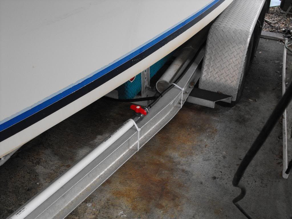 Love the design of your self-contained rinse system. Not to mention the concrete filled PVC to keep the trailer from floating and the gussets on the bunk brackets. You sir are crafty.