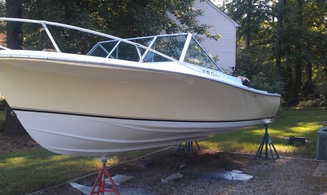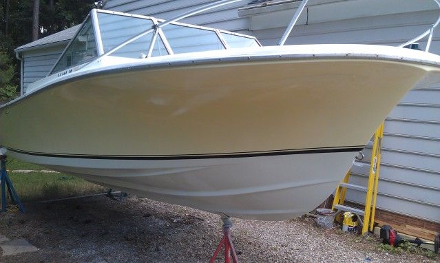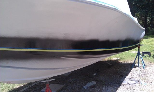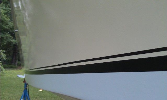 Thanks guys, I am very happy. I will post some more pics when I get a chance. Thought about putting up a realistic budget DIY hull paint job thread. I took some photos during the process. I used Devoe brand products. 201 epoxy primer and 379 urethane for the color coats, topped off with 379 clear to seal everything , i.e. stripes and things. All 2 part paint. really didn't have to use the clear. The 379 has a great shine to it anyway, just wanted to add a layer of scratch protection.
