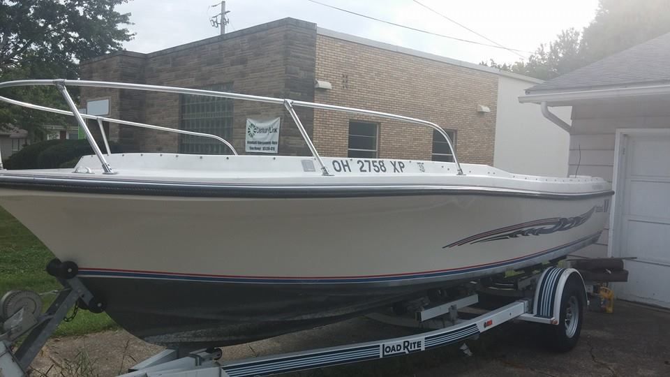 bow rail will be coming off the boat before it is taken. center console is not in the picture but i will give it with the boat to a forum member trailer is not included but i can sell you a single axle load rite for $200 (not the one pictured) boat is located in south amherst ohio ![]()