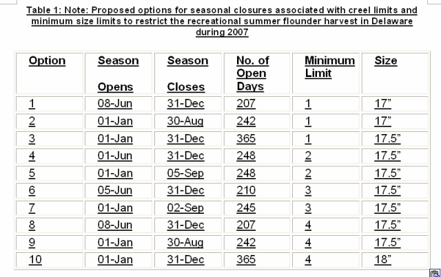 |  Propsed Delaware Flounder Limits
