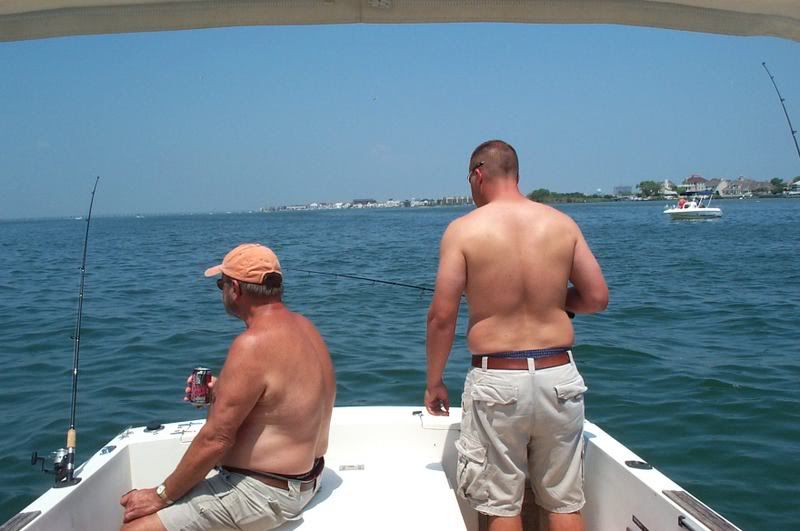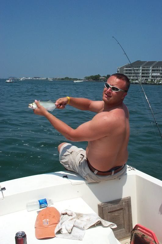 well my parents and brother were in town last week so I took dad and bro fishing..... ;D pic from the OC, MD inlet  shot at the beach  waiting......  catching..... ;D ;D ;D they are small I know, but they were happy to be catching something    mine from the night before.... ;) cant wait to catch one in my new shirt ;D thanks Ches ;)
