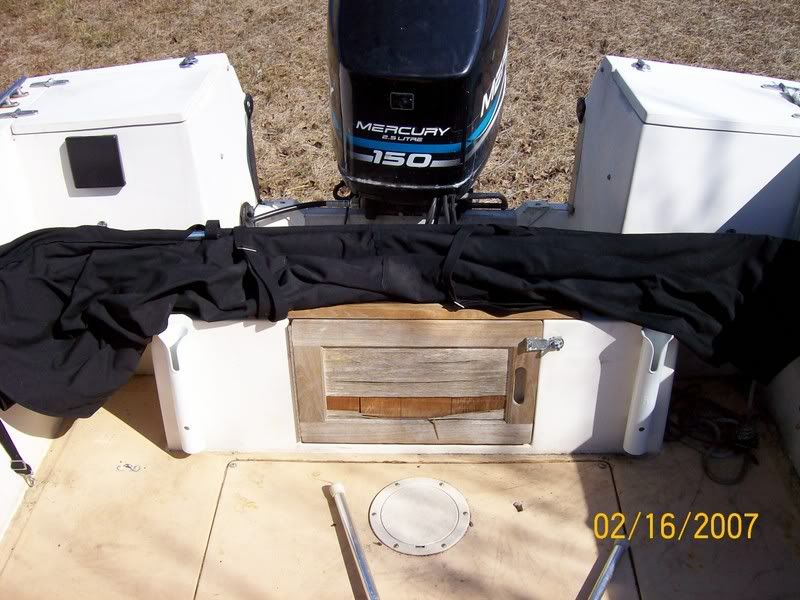 The fish box/live well cover between the seats is soft on the front left corner, will need fixing. The door to the bilge needs fixing.  The bunks on the trailer are rotten but the trailer pulls nice, much better than my single axle under the Starcraft.