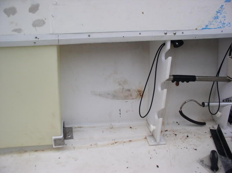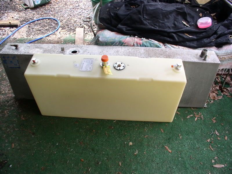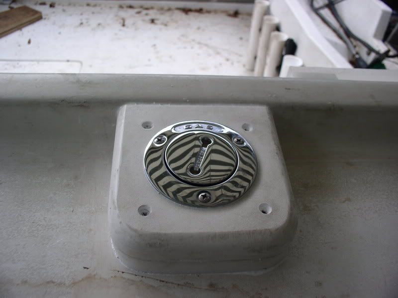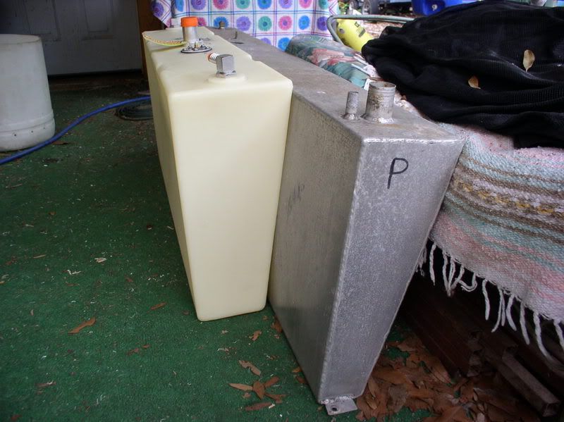 I looked for a couple of weeks for replacement options. Best bet was to send the tank to the fabricators and have one built, most likely well over $400 after shipping. Another option was to replace with a readily available one and modify the V to handle the changes. Well, that is what I ended up doing. I ordered an 18 gallon tank, with shipping less than $175, it’s a little wider and taller than the original 20 gallon one but not as long. There was a 24 gallon one available but it was even wider, taller and longer than the 18. ![]() ![]() Checking to see how much fabricating I’ll have to do with the tank in place. ![]() As you can see, there is no room for the filler neck and something has to be done about strapping it in. There was no way the 24 gallon would have fit without major modifications. Figured all I had to do was relocate the filler neck, build up the filler location and maybe everything would fall in place, oh don’t forget the strapping for the tank. Had to make brackets out of stainless and insulate with cutting board material bent with a heat gun to fit. ![]() In order to have a filler location and not a flag pole sticking up, I had to do a couple of things that would prevent double clamping the filler hose (as per USCG reg # kissmyass). Had to cut off the filler neck a little. Make a couple of shims out of Starboard and then assemble all of them. ![]() ![]() There was a peck order that had to be followed to assemble this crap. Had to bolt down the lower portion of the filler support shim. ![]() Then after cutting the hose the right length, attach it and tighten to the filler, put the tank in place, then put the clamp in place to slip over the neck in the tank. ![]() This is the ruff finish (probably as good as it will get) of the filler location. ![]() The strap locations after welding and bending the insulating materials. ![]() And we had a little of space left over between the old tank location and the rodholders. ![]() If any of ya’ll have to go thru this crap that needs saddle tank replacement, it might be better to have some replacement tanks made instead of going thru this turmoil. I didn’t feel comfortable about replacing with a used tank of the same era, just me. Didn’t want to tackle the starboard one till I had to. The steering would have to be relocated, and God knows what else!!