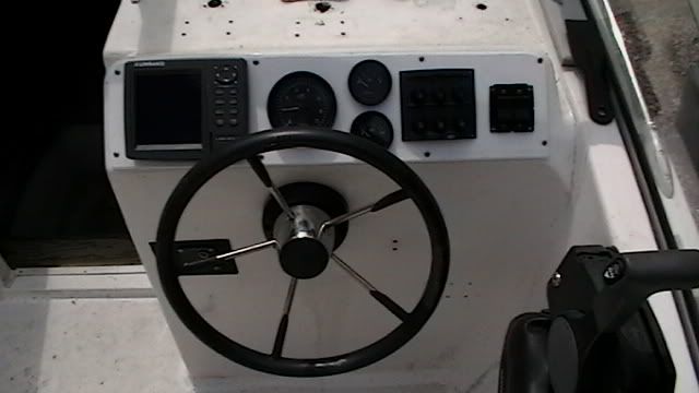![]() Labeled all as I went thru...today decided on the new layout and went at it...first a template to make sure it would all work... ![]() Anything white showing thru the red got cut away...fit all the stuff into the template... ![]() It all lined up pretty good, so went ahead and whacked a new one outta 1/4" Starboard..had to remove the wheel to saw the dash, so went back w/my old one from the '74... ![]() ![]() Still gotta get behind there and rewire everything...hopefully tomorrow, but things are still movin along...oh and to catch up on some earlier business, had the shaft on the Minn Kota lengthened and got it mounted the other day...preceded by cutting away the center section of the bow-rail...hate doin that, but just can figure a better solution... ![]() Somebody posted some pics after shortening the legs on their bow-rail...I thought it looked GREAT and will do same later, but right now, I gettin what's GOTTA be done to GO FISHIN!!...