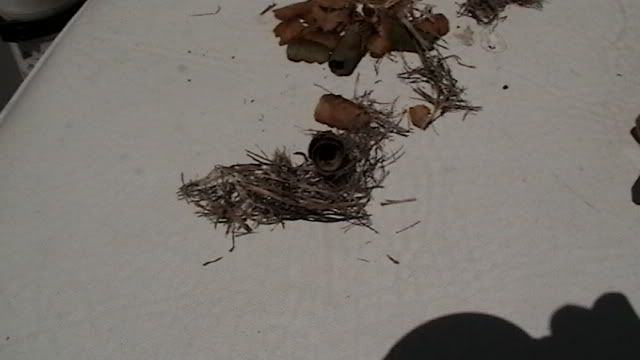 ... I was replacing the vent fixture today and stumbled on what was abut to be a REEL problem...![]() Look at all this CRAP that was inside the hose after I pulled it off the old fixture...90% clogged...leaves and moss perfectly rolled to fit the inside of the hose... ![]() The dark round thing in the middle of this picture is a bunch of rolled up leaves some kind of insect was packing it's nest with...glad I found it when I did...if your fuel tank isn't taking fuel as fast as it should, CHECK IT!!...I shoulda known... ...