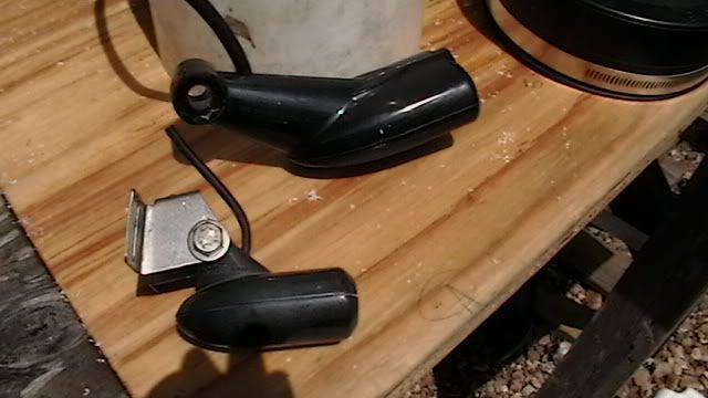 First off, my transducer is a dual frequency Lowrance, which means it's about as big as the shank of a small hog as opposed to the smaller one in the foreground...this meant goin to a 6" pipe and cap, but ample room in bilge, so no horrors there... ![]() Fist order of business was to whack off...the pipe, Man...THE PIPE!!...as this size pipe wouldn't fit under my chop-saw, had to use hand saw, but managed to get the angle needed... ![]() Top view shows the "L" bracket I made up for main attachment point to inside of pipe, thru-bolted to the transducer... ![]() From the bottom the small orange tab (rubber end cap over a screw thru the sidewall) is there to keep the transducer from dropping down, although it tightened up well to the bracket, I'd rather not open this thing unless I have to... ![]() Sliced an "X" shaped slit thru the rubber cap, fed the transducer plug and all wire thru it making it ready to install... ![]() On installation, I'll run a healthy bead of 5200 around the angled base and apply to the 20* inside of the bilge...a zip-strap around the rubber cap to secure the wire after tightening the clamp, seal all the screws and paint some liquid electrical tape into the slot and around the wire where it penetrates the cap...that oughtta keep the water that'll fill this well from sloshing out... Like said, I'm gonna try to get this in today, so better get crackin...if anybody sees where I can improve this set up, let me know...this is my first time at this so be gentle...yeah, RIGHT!!...LOL!!
