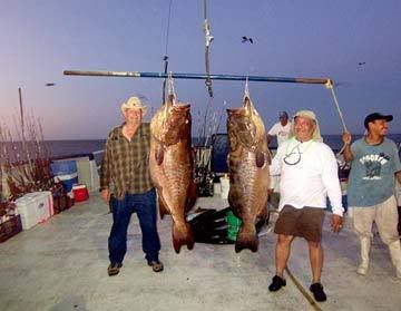 Oh yes Mr. Hammer... there WILL be pictures. Below is a map of Baja then an enlargement of the islands we'll be fishing. *I'll refer back to these maps when I post my reports later. ![]() ![]() The picture below was taken last week aboard the Andrea and posted in the weekly Mexfish.com report. *My dad turned 76 last week. *He and mom are coming along and his dream is to land one of these. MIDRIFF BIGGIES--A pair of large gulf grouper landed at La Vibora at the south end of Isla Angel de la Guarda aboard the San Felipe panga mothership Andrea Lynn last week. ![]()