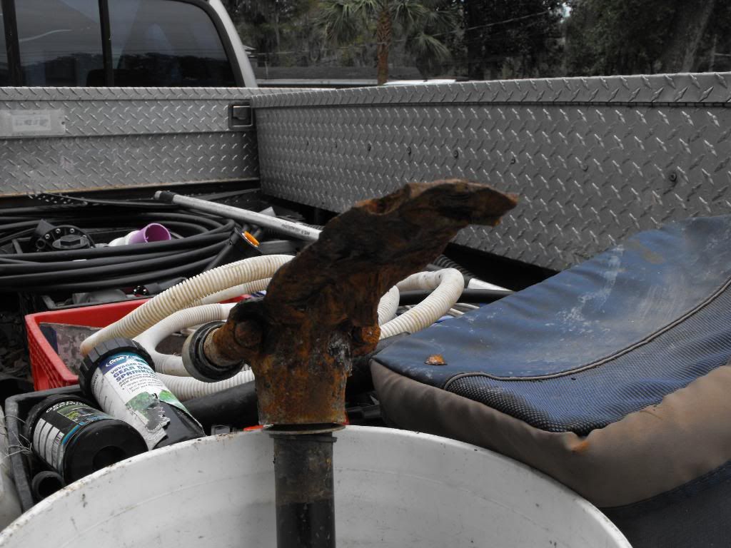 This is some shots of my current project.  replacing the steering arm on my 94 merc 150.  this thing has been slowly rotting off for about 10 years.  Big shrimpin located a very clean fresh water arm and bracket for me while in california and i have been avoiding this project for 5 or 6 years.  my friend(who is the real mechanic) finally talked me into jumping on it.  i believe this is the first piece to come down the assembly line.  had to pull the foot, powerhead, intermediate house, trim & tilt, and transom bracket off the hull.  the toughest part was pulling the powerhead. 18 years in the salt and never been off.