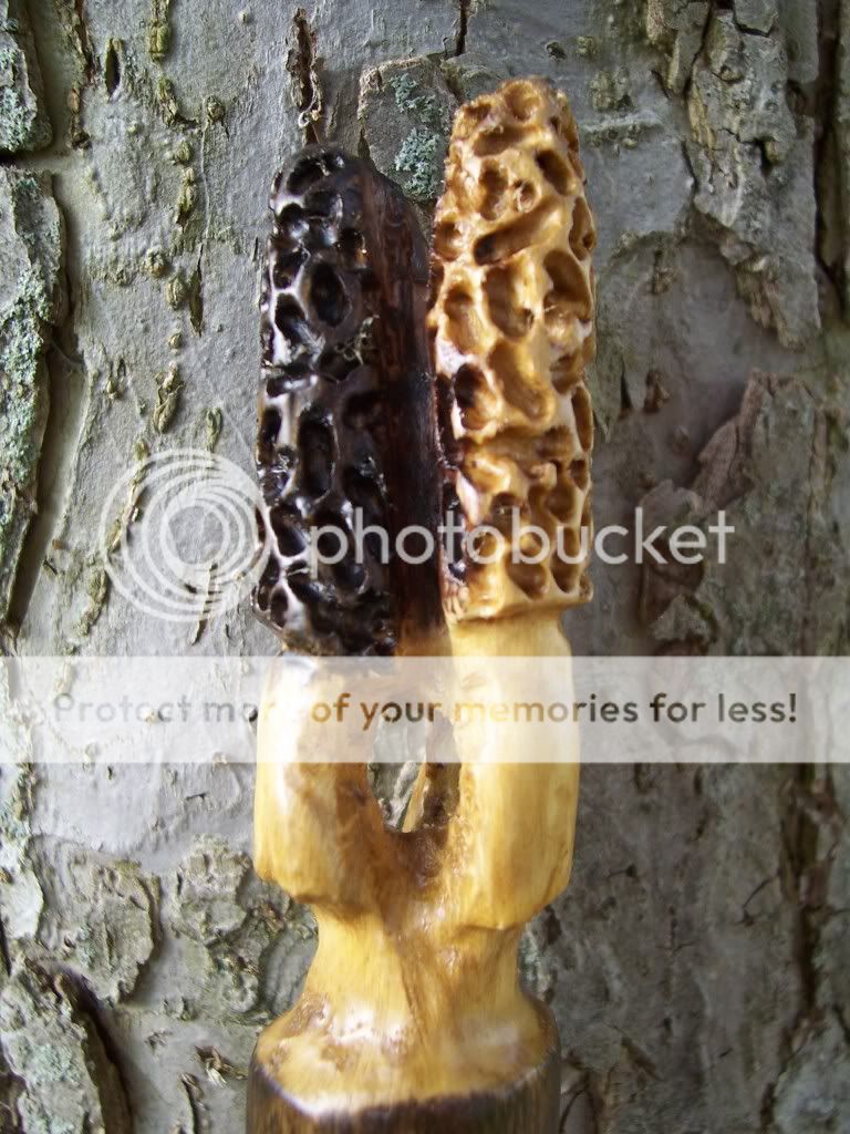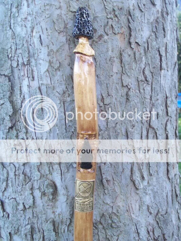 After reading Kracker Jacks thread on his fish carvings(which are really good!) I thought I'd post some pics of some of the hiking sticks I've carved recently. All were done with a dremel and have various morel mushrooms carved on the top.One was done for a friend who has since passed on.He was part Cherokee and I did one for him with an arrowhead and an attached Little Big Horn Battlefield medallion to it.