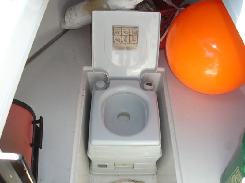 allright fellas. this is how you make your ride a little more female friendly. I know a bunch of you forbid women on your boats but for me I love it when I can get my wife or daughter to go with. specially on weekdays when most my buddies are workin. this is a Vista potty and it drops in and fits perfect like it was custom designed. Now I dont approve of my buddies dropping a big ol grumpy in there unless they dump her themselves. But for the gals having a comfy place to tinkle makes all the difference.