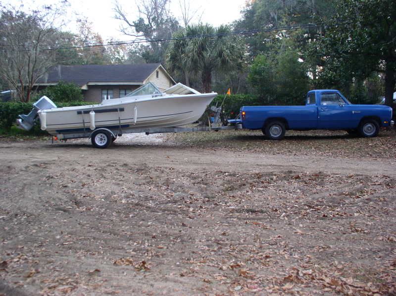 This may not interest hardly any of you, but I thought it was neat how things can come about full circle. The V I got, was my grandfathers bought new in 1975, it changed quite a few hands (even my fathers) before accidentally finding its way to me less than 3 years ago. My father worked for a local auto dealership, one of the benefits was the occasional use of their parts delivery truck. He would on occasion use it to pull the boat to the ramp. I bought the truck 11 years ago as a third vehicle, used it about 6 years. Well it had been sitting for about 5 years till this summer, I decided to try to sell it. I got no takers, put new tires on it , no takers, even painted it, you guessed it no takers. Figured, might as well use it to pull the V to the ramp on occasion. First time they have been together in over 21 years!!
