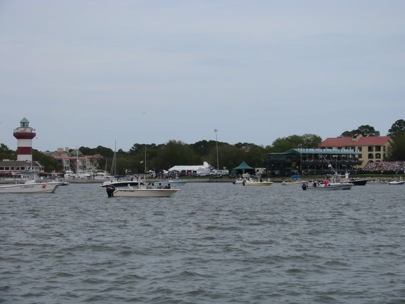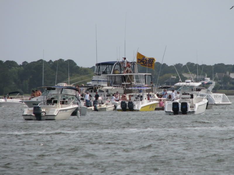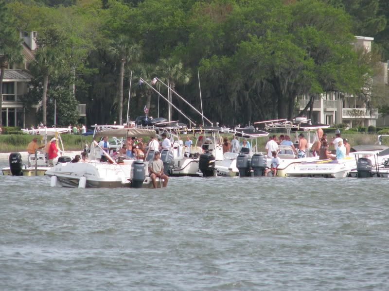 Reel, I can't say for sure if you saw us or another V-20, but we were there, with the blue top up. Just me and the wifey and one of the dogs on the ol' PD, but there was another V rafted up with a second boat, and they seemed to have a nice little party going on. It was one of the better Heritage tourneys to go to by boat, as high tide was late afternoon and there was plenty of water. I took a long look around and estimated about 70 boats there at peak. Two groups of about 6-7 boats rafted up, with a lot of folks on board that I doubt barely knew there was a golf tourney going on. It was quite the spectacle. ;-)