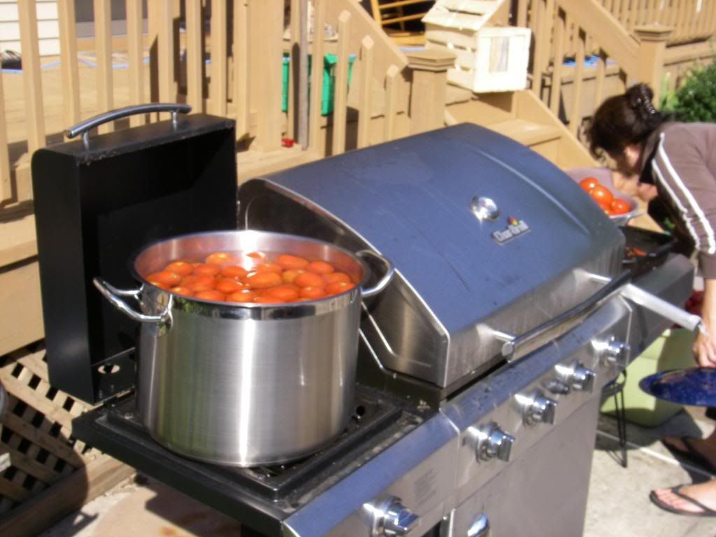 The CEO in her full Italian mode ![]() Some shots of the clan at work in my back yard, seven burners going plus the stove inside, 160 jars total plus another thirty for fresh sauce ![]() ![]()