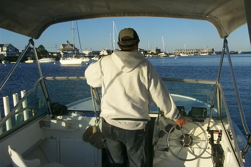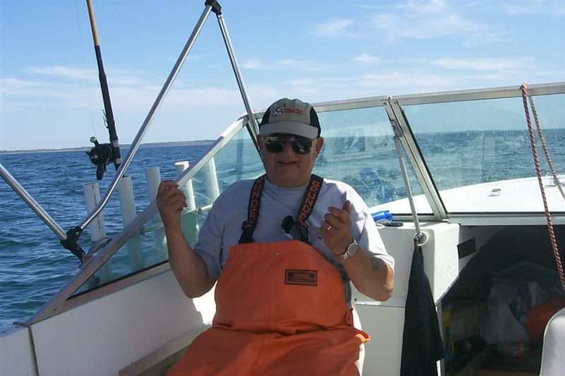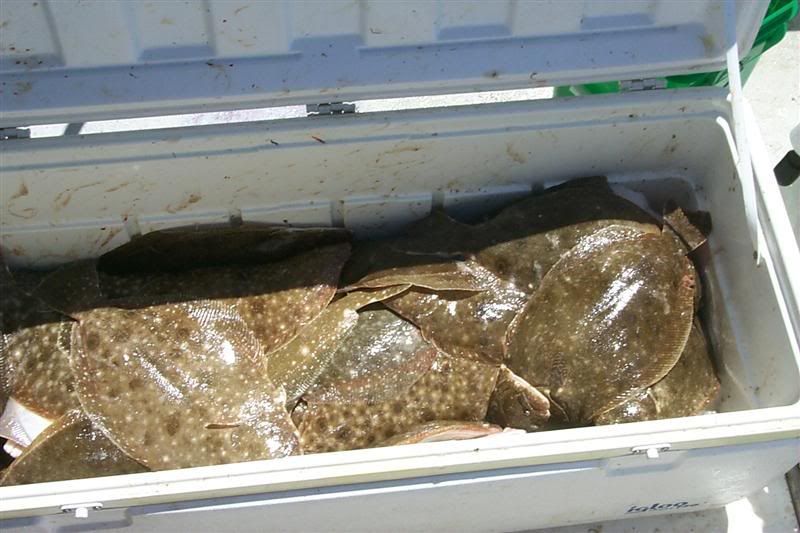 About a mile up the road he was on the side of the road looking to see what he lost?? I pulled over and said I have your tote in the back of the truck, he took it thanked me and I was off! Meet friend Kenny there at the ramp launched the boat. On the way out the wind was 10 to 15 NW right in are face with the tide right in are face!! Made form a real wet ride out even in a cuddy!! Seas 1 to 2 feet. OK headed out of Falmouth Harborer at 6am, headed right for Quicks Hole as there was some reports of big Fluke around?? Got there and fished 45 min and manged to just get 3 Select size and nothing else. Moved to the Hooter as this is were a friend said he got 110# the day before. Got there and the same friend was there and was getting anything! So we decided to head over to Lucas Shoals. Got to Lucas and the tide was wrong, kept picking one here and one there but nothing to get excited about. Well it was now like 11:30 and the bite always seems to die off at Noon so I said we will stay till noon and we out of here!! Kenny said yea I guess its a no sale day. said yep. Then the tide changed, and the bite was on!! We had 3 rods out and were getting triples!! Non stop action went on for more then a hour! I said Kenny he said what, I said it looks like a sell day!! He goes yep sure does!! OK now its time to go home, and the wind is now 20+ from the SW (at are back) and a in going tide we are all set!! Well we had 3 to 5 foot seas now and plowing right threw and dry as a bone all the way! In the end we had 31 pounds Selects, and 72 pounds market Fluke for a total of 103 pounds! And here are the pic's to prove it today!! ;) *For all you doubters!! *;) This is Famouth ![]() ![]() Kenny keeping the boat straight so I can snap some pic's ![]() Garmin's at work!! ![]() Rods set out ![]() Kenny telling me a story ![]() Martha's Vineyard from the water ![]() 105 qt cooler of Fluke ![]()