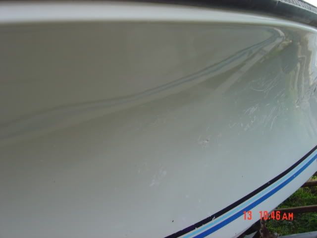 I'm told its a mid 80's, has some gouges in the side and soft spots in the floor. Garagenc went by and took the pics and inspected. Don't know the condition of the sea drive but planning a bracket boat anyway. Transom did not flex when garagenc did the jump test.