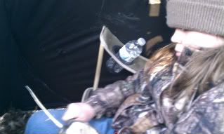 Spike she shot for a doe Friday PM. Perfect heart shot. ![]() ![]() Learning to whittle. ![]() Our veiw Saturday PM. We had a bruiser get by us late. ![]() Man I love hunting with this little monkey! So much more fun than by myself. Thank you GOD for my blessings!
