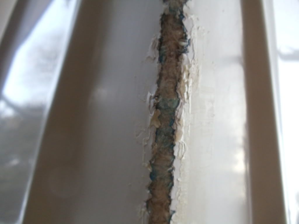 Oh No!! I found a problem with my V this spring . I was out working on Her and was looking at were I am going to move the transducers mount my tabs. While I was inspecting the hull I noticed some white flakes in the grass in a closer look it as white epoxy or something like it. The previous owner must have beached Her or drug Her over something hard ? But I need to fix Her up soon She don't deserve to look that way and for my " Dream Fishing Trip " coming up in 9 weeks. Any one know what to get and or how I can fix Her up I did take a few pic's of the damage. It's not deep the gell is just scraped off.