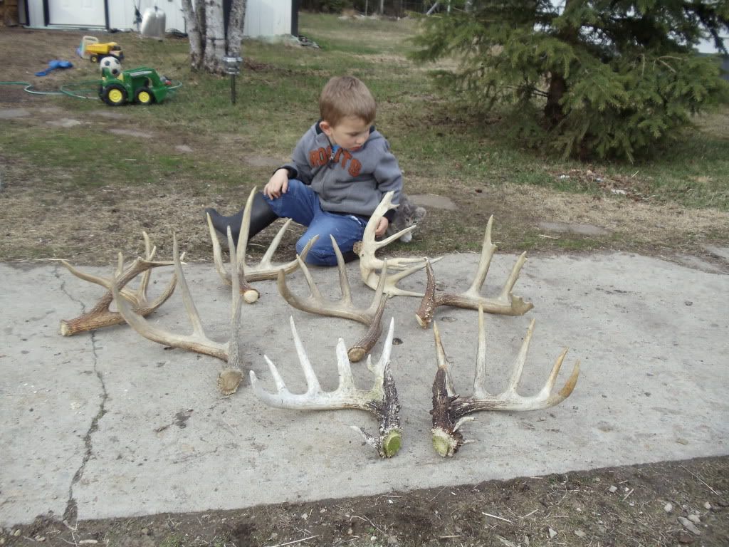 I found some monster whitetail sheds the other day. They are huge the basses are over 6" the single shed Kalum is holding scores 89" and has 6 broken stickers. There are 9 broken tines and stickers altogether if they would have all been there this deer would have scored bettwen 210" and 220". Another northren brute Hmmmm what could have been.
