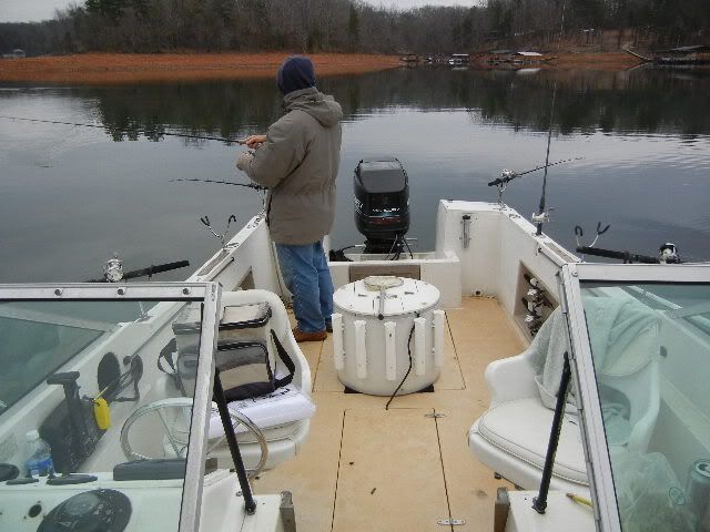 So we usually are pulling 6-8 lines at a time along the points and back in the coves and many times we find feeding fish out in open water...