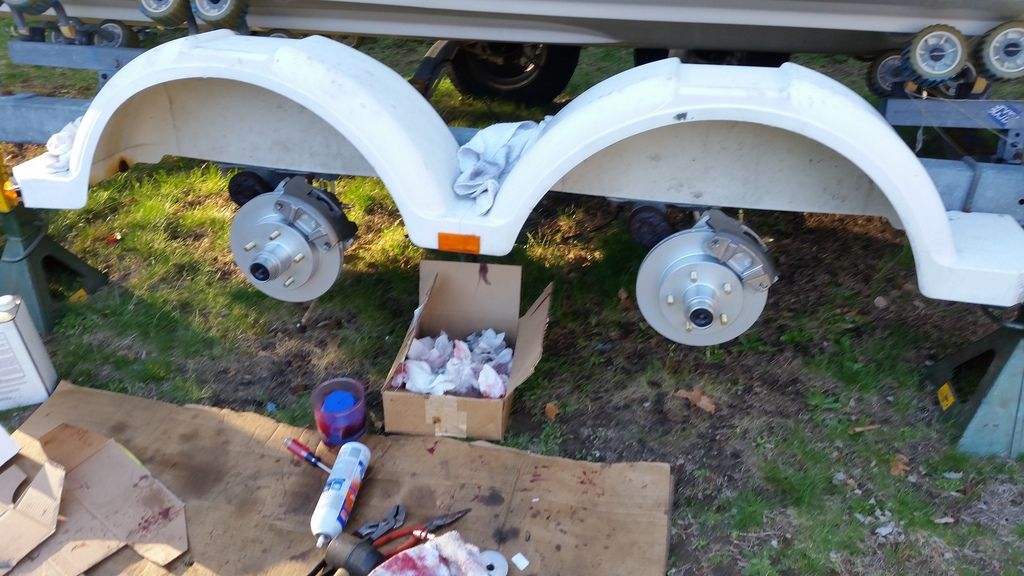 My trailer's a SeaLion.....about 3 years old bought new with optional stainless rotors and stainless brake lines. Disk brakes on both axles, so got a chance to see how they all wore down ok. Squeezing the new pads into place was a challenge, till I learned to tap a metal wedge in between the old pads to force the hydraulic shaft to retreat enough. Then the new pads fit in easily... As with most jobs, learning little tricks to it is difference between struggling and easy work. Rear seals - yeh, I was first lathering it all up with grease, grease and more grease. I guess I reduced the grip, even though the seals tapped in tight ( used wood block to set in straight ). Finally on 3rd rear seal attempt, I used new seal dry, and cleaned hub rim dry with solvent. Now it's rubber to metal and seal seems correct and tight. Pumping grease in.....the grease has to move through the bearings to migrate back out the front, so it does put pressure on the rear seal. Therefore best to pump the grease in slowly, and if possible not when it's extremely cold outside, which thickens the grease a bit. Last edited by bgreene; 02-10-2016 at 07:30 AM. Reason: corrected |