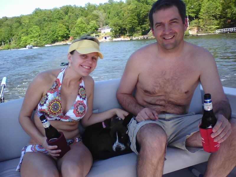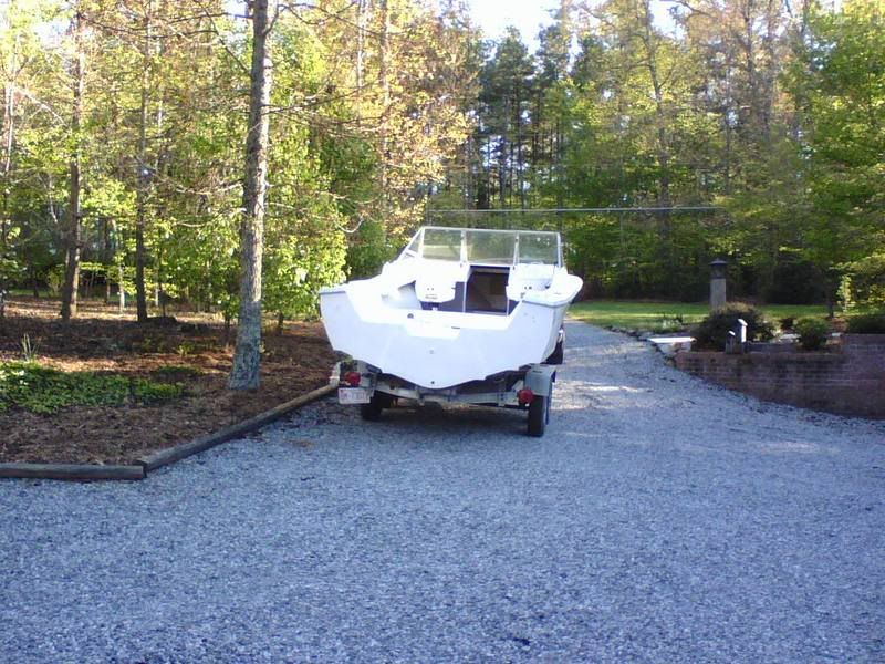 8am - Woke up at 8am and straight outside to ready the boat for the lake after church. * 10am *- Back in to get ready for church. * 10:30am - Went to church. 12 noon - Back home, change clothes, any last minute items, not exluding making 4 chicken breast sandwhiches (leftover grilled chicken breast from night before) with lettuce, mayo, salt/pepper, cheeze, pickle, and potato chips. *The sandwiches went into ziplocks and into the cooler for a dockside picnic later on. 1pm - Headed to the boat ramp - 10 minute drive. Arrive some time after 1pm and launch the boat. *Begin making our way over to our place. *Its probably a 15 minute boat ride just taking it easy. *Have to go under 1 bridge which requires me to fold the bimini down. We get there and tie the boat off. *I made a chumpot out of a 2 liter coke bottle. *Just put a dime sized hole near the bottom and filled 1/2 with catfood. *Then just tie on a rope, fill with water and tie off to the dock whereever you want. * Once this was done I proceeded to throw the castnet. *(But not before polishing off a grilled chicken sandwich with lettuce, x-tra mayo, cheeze and a pickle with chips *;D) 1st cast I get a big haul of small threadfin herring - perfect crappie bait! *But the crappie were finicky so I went catfishing. * My 9 year old's barbie rod went to screamin! *We had an "unstoppable". *I mean she pulled about every bit of line outta that thing. *We got it on video along with some other antics. *The thing is, the drag didn't work so I could not tighten. *This caused me to have to put line on by hand, which you can see in the vid. *Then trying to land the fish I had to pull it over some brush which eventually broke the line. *Bummer! * Video: http://s33.photobucket.com/albums/d7...0429071535.flv So, on to the next fish. *This one I landed on light tackle ;D Video: http://s33.photobucket.com/albums/d7...0429071920.flv Both were flathead cats plus or minus 10 lbs. *I would have weighed the 2nd one but my 9 year old was asleep in the cuddy and the scale was down below deck. Here's some more pix: A better pic of the 2nd 10 lber!  Funny thing here too - my little "Rat" dawg fell in the water twice - once getting off the boat and once becuase she saw a reflection on the trees from the sun shining on the water! *Scared her into the water backwards barking! *Too funny! *;D More Rat Dawg pix: Runnin 28mph  Rat Dawg and Daddy Dawg  Heres our little piece of High Rock heaven: 1972 singlewide LOL *8)  Jen and Donald and "Rat Dawg"  Last but not least, here is my 1972 V20 leaving my driveway last week *:'(