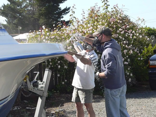 Alot of guys here swear by Awlgrip paint. I live in a fairly rural area with limited options for marine paint. Awlgrip isn't available. I'm using Petit Easypoxy undercoater and paint. Reel, the brother next door knows he's gonna get a boat ride. He's looking for free baby sitting.
