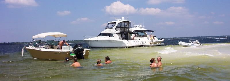 Here's a shot of the Chris Craft version of our beloved...havin' fun on Shell Island, near Panama City FL