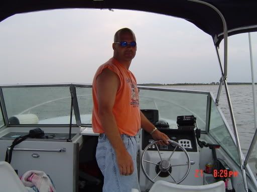 Ok, well, the day didnt start off to well. The motor started right up, but when I went to take her out, she wouldnt go over 2000 rpms ??? they stall out. This happened three damm times. Almost ready to call sea tow to come and get me. :'( :'( :'( Limped back to the dock when I finally got her running. Wife showed and I said what the hell, I could use sopmeone to talk to while being stranded out at sea ;D so I took a chance and took her back out. This time she ran perfect ????, had her up over 35 mph. Bay was abit choppy, and still need to learn how and when to trim the motor. Ran her up and daown the Delaware Bay and again she was running perfect. Any ideas ?? clogged fuel line, something floating around in the tank, I still have the same fuel filter that came with th eboat when I bought it, but it looks brand new. Someboday mentioned earlier about plugs, she ran perfect on the old plugs, then had new ones installed thaen I break down. So I have no idea whats going on. Monday I'm gonna grab a new filter and hopefully she will run as good as she did the 4th time. Enjoy the pics.