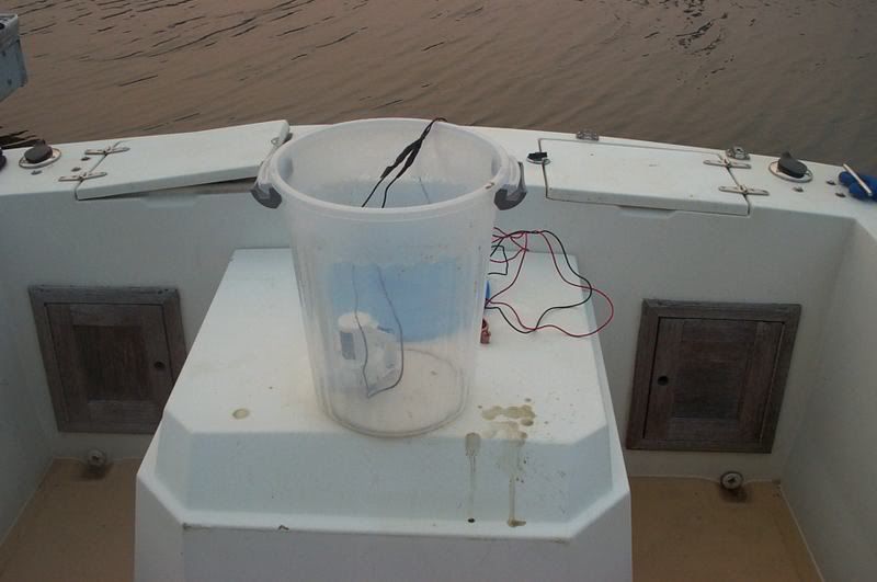 I have finally figured out how to add a live well and want some opinion if this will work. I added a wash down several months ago and figured I could use the same pump for my live well. I was going to used a 5 gallon paint bucket and first wanted to know if it was big enough to keep small bait like ells and spot alive. I was going to add a quick disconect to the side of the bucket which I could plug the hose from the wash down into. Then i was going to add a fitting at the upper half of the bucket with an outer hose which I could stick into the drain **** where the bucket will sit in the back corner of the boat. I would cut an opening in the top of the buck for the access door which I will hing and add a latch. This is the only thing I could come up with as all my other storage is pretty much used up and a portable live well was my only option. So, does this sound like somethng that will work and will it be big enough to keep the bait alive? Thanks for any imput.
