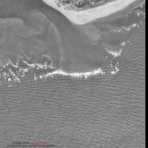 here's a pic of my inlet from space see the break water out in the ocean about 1/2 mile off shore wow that is a rough inlet and that pic looks like a calm day lol