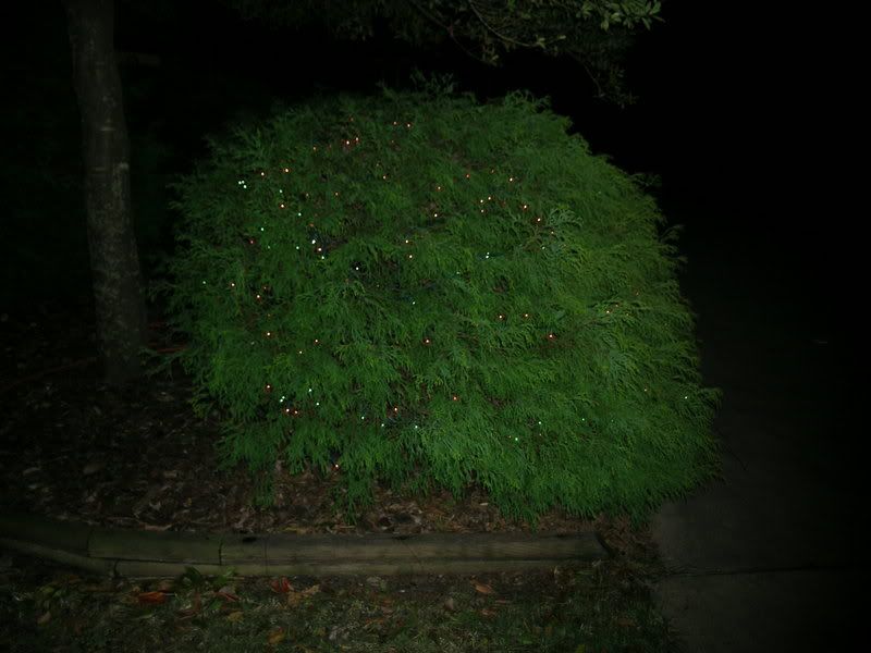 ![]() dont that tree look purty ![]() another angle of the great room ![]() front yard hard to see but thats it ![]() side yard bush so is anybody else decorated for the holadays ??? Fishbonejr |