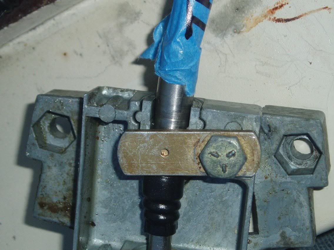 I'm at the end of a frustrating day. My Sturgeon fishing trip was interrupted when my boat got stuck in reverse. I took a closer look at the controls and found that they had been band-aided together by the previous owner. What is missing is a metal insert that keeps the cable sheath from sliding while the cable slides in and out. Here is a photo of the area where the insert would go:  And here is a shot of the other cable that shows what the broken one should look like:  And here is a closeup of the insert that I need:  Does anyone know where to get one of these? Does anyone have an old set of controls that I could buy for parts or to replace my whole setup? This is a factory set of controls (I'm assuming) that is on a 1980 model. Maybe it's just time to replace them. I don't know... Thanks in advance for your advice on this!
