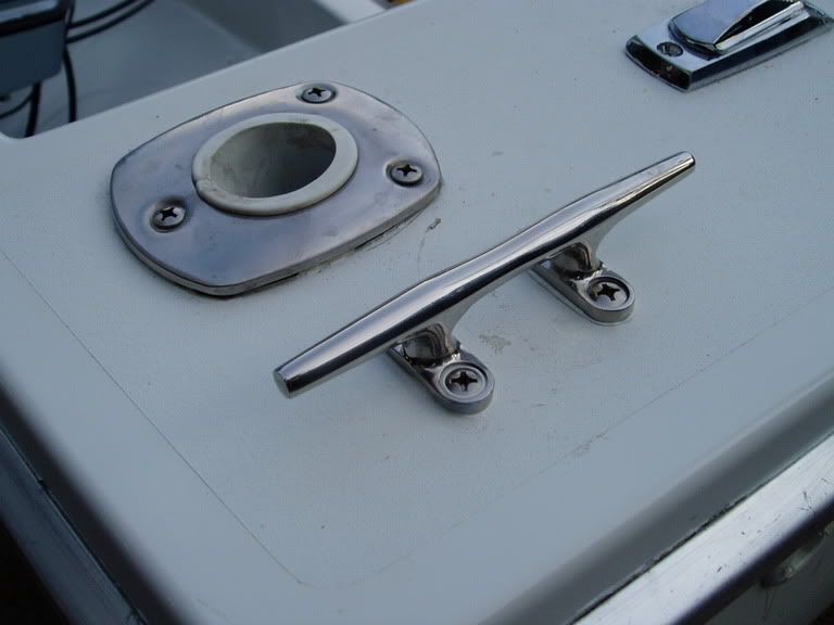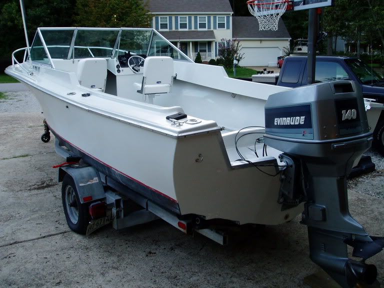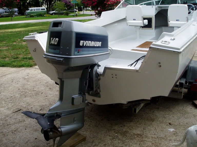 Well, and friend and I bolted up the motor yesterday. I got the Tilt/Trim unit bolted in. The same friend came over today helped me install the last two cleats. Labor Day weekend is coming quick. I told my wife to plan on going out on the boat one of those days with family. Anyway, here are a few pics.