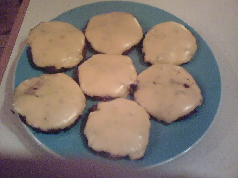 Out of one package of 93% lean a lil over a pound of meat I can pat out 6 or 7 patties - most of the time 7, it all depends. Then I like to marinate in some worscester sauce and of course Mckormics steak seasoning after they are patted for about 15 minutes or so. Then once on the grill cook on high. As one side gets done, I have the cheeze ready on stand by. Before I apply the cheeze, on each piece I fold down all 4 corners so that the cheeze will sit right on top of the burger without overlapping onto the grill top. Some cheeze still inevitibly makes its way onto the grill top as it melts but not near as much as not folding down those corners! The finished product: ![]() Makin myself hawngry! ;D