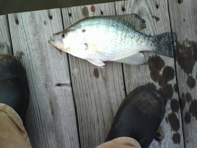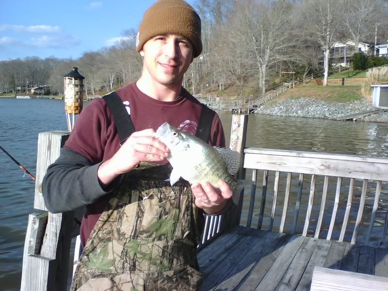 Me and some buddies have been jigging up some crappie on my dock at High Rock.  I took a couple pix.  Nothing real big but good eating size.   All were released but next time we might release some in the grease!