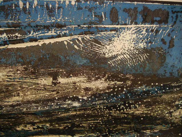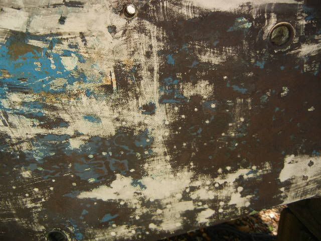 ![]() Got a LOT of the several coats of paint off ![]() ![]() But as you can see there's more to go, but I figure the more I can get off this way, the less I gotta strip, sand or dynamite off...I think some of these coats of paint were applied w/some moisture still on the hull...these little pea-sized pock marks kept poppin' up and I believe them to be water droplets that were caught in a coat of paint... ![]() Here's the transom w/some of the pock-marks...ran the sander over them and they got smooth before getting to glass... ![]() Well the last two pics got mixed up...pilot error...but you get the idea...