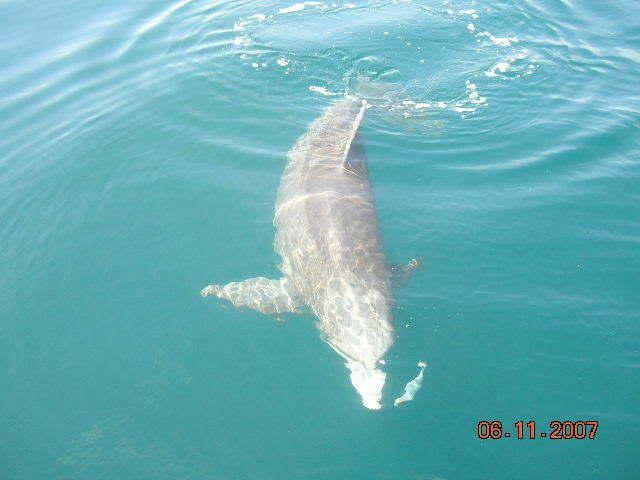 Went out today about 14 miles. Porpose kept hanging around the boat.